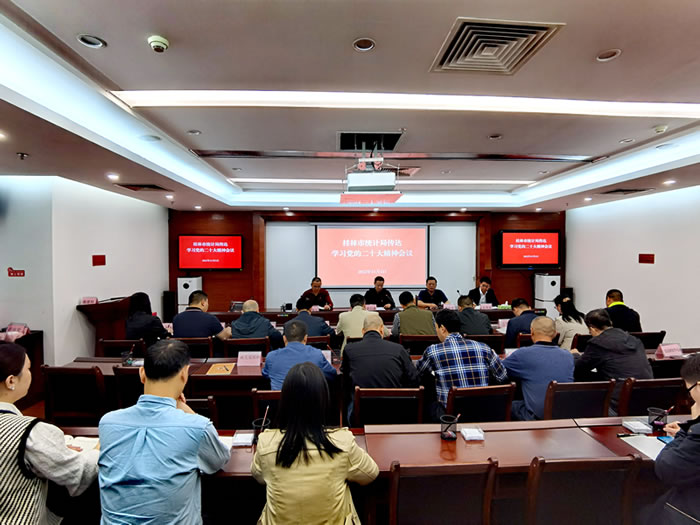 11月1日,桂林市统计局召开全体干部大会,深入学习宣传贯彻党的二十大精神和习近平总书记参加广西代表团讨论时的重要讲话和重要指示精神,动员部署本局深入学习宣传贯彻落实措施。局党组书记、局长梁白冰主持并讲话。