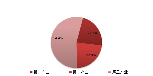 初步核算,全年全市生产总值(GDP)2130.41亿元,按可比价计算,比上年增长2.1%。分产业看,第一产业增加值484.46亿元,增长6.2%;第二产业增加值486.48亿元,增长4.6%;第三产业增加值1159.47亿元,同比下降0.7%。三次产业增加值占地区生产总值的比重分别为22.8%、22.8%和54.4%,对经济增长的贡献率分别为68.4%、50.9%和-19.3%。