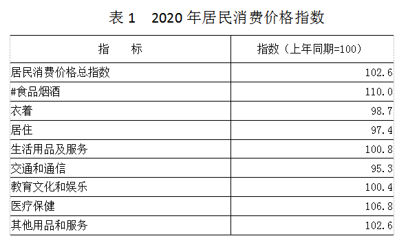 2020年,居民消费价格(CPI)同比上涨2.6%;商品零售价格同比上涨1.4%。