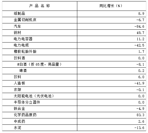 从行业看,计算机、通信和其他电子设备制造业增加值比上年增长51.3%,农副食品加工业增加值增长70.3%,黑色金属冶炼和压延加工业增加值增长12.9%,电气机械和器材制造业增加值增长12.2%。装备制造业、生态食品业、医药及生物制品业、电子信息产业四大优势产业增加值比上年增长15.0%,其中,装备制造业、生态食品产业、电子信息产业分别增长14.9%、13.2%、22.1%。从产品产量看,钢材增长49.7%,电力电容器增长11.2%,橡胶轮胎外胎增长1.7%,饮料增长6.0%,化学药品原药增长83.3%,中成药增长2.6%。
