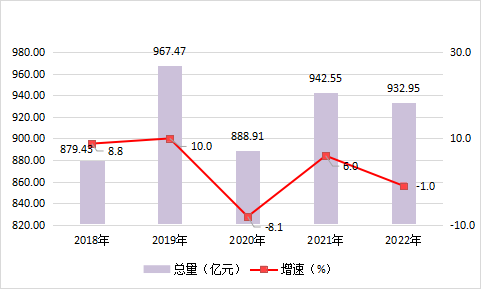 图6 2018-2022年社会消费品零售总额及增长速度