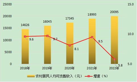图9 2018-2022年农村居民人均可支配收入及增长速度
