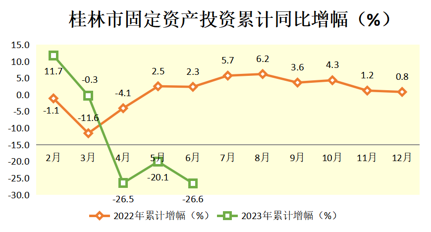 2023年1-6月桂林市固定资产投资累计同比增幅