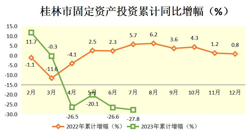 2023年1-7月桂林市固定资产投资累计同比增幅