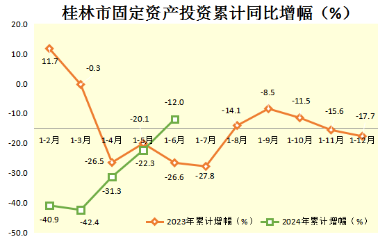 2024年1-6月桂林市固定资产投资累计同比增幅