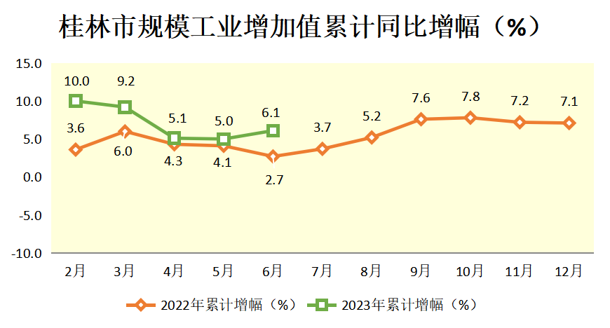 2023年1-6月桂林市规模工业增加值累计同比增幅