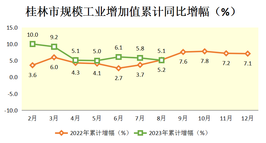 2023年1-8月桂林市规模工业增加值累计同比增幅