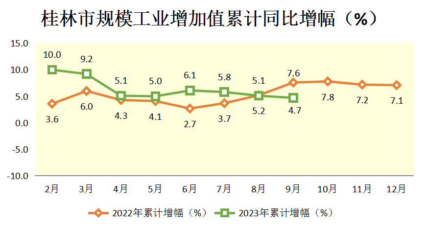2023年1-9月桂林市规模工业增加值累计同比增幅