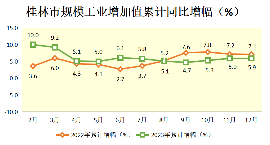 2023年1-12月桂林市规模工业增加值累计同比增幅