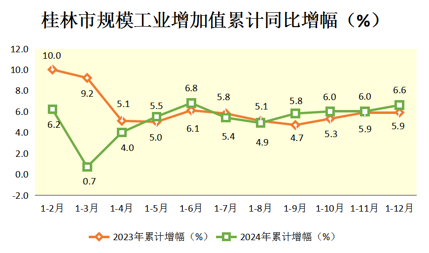2024年1-12月桂林市规模工业增加值累计同比增幅