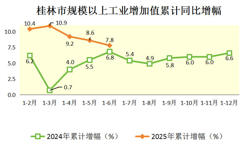 2025年1-6月桂林市规模以上工业增加值累计同比增幅