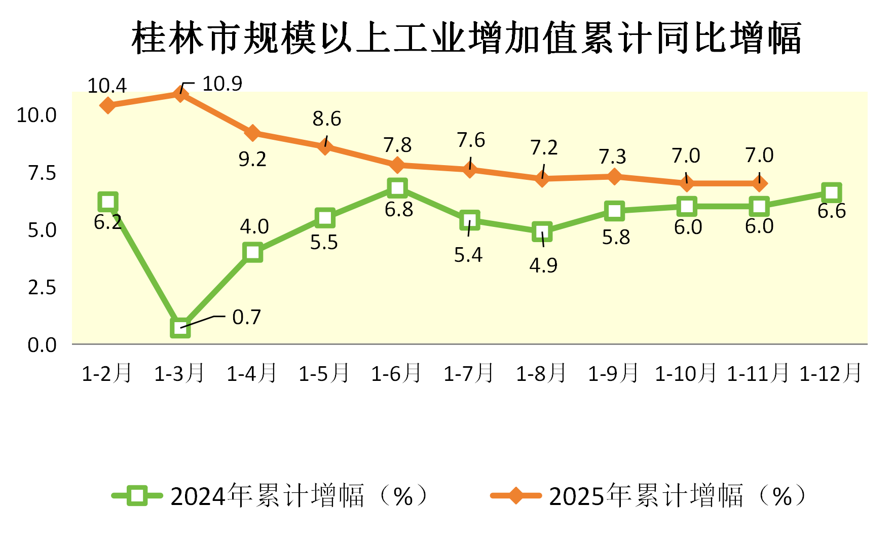 2025年1-11月桂林市规模以上工业增加值累计同比增幅