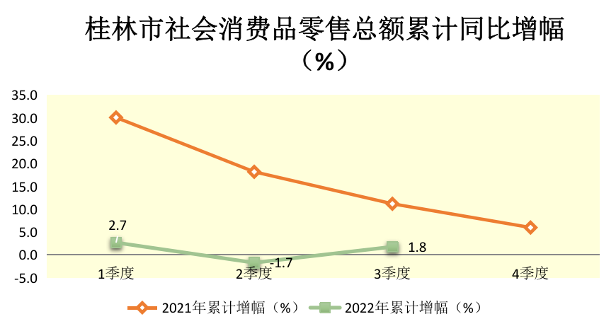 2022年1-10月桂林市社会消费品零售总额累计同比增幅