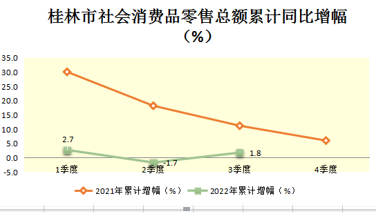 2022年1-9月桂林市社会消费品零售总额累计同比增幅