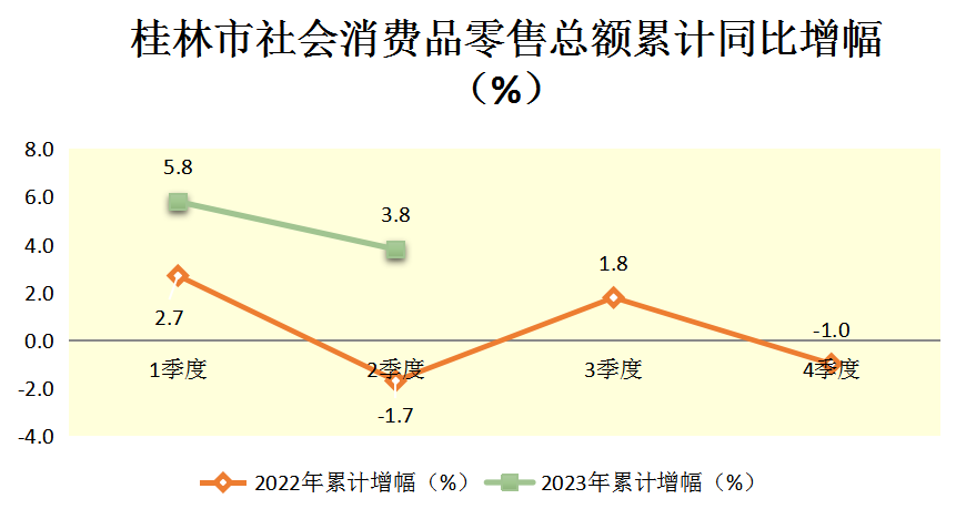 2023年1-7月桂林市社会消费品零售总额累计同比增幅