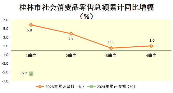 2024年1-3月桂林市社会消费品零售总额累计同比增幅