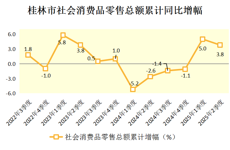 2025年1-6月桂林市社会消费品零售总额累计同比增幅
