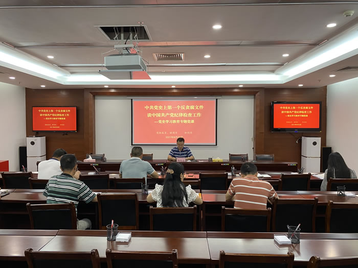 为深入扎实开展党史学习教育,8月26日,桂林市统计局党组成员、副局长和向东、林福元两位同志分别以《中共党史上第一个反贪腐文件--谈中国共产党纪律检查工作》和《解放战争中的三大阻击战》为题给市统计局第二支部全体党员上了一堂生动的党史学习教育专题党课。