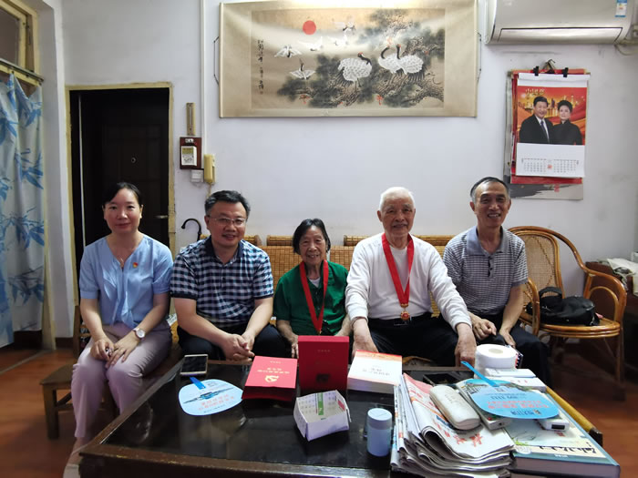 在全国上下喜迎建党100周年和全党深入开展党史学习教育之际,6月30日,桂林市统计局党组成员、副局长和向东同志带队,走访慰问退休老党员,为党龄超过50年的老党员送上“光荣在党50年”纪念章,转达党中央和市委的关心关怀。